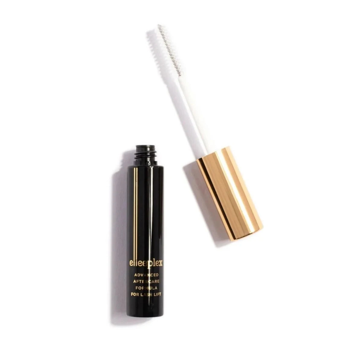 - Apply a small amount of Elleeplex onto a clean mascara brush.